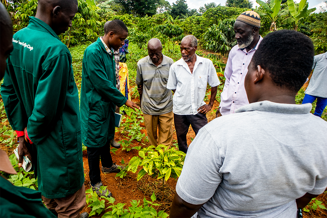 Farmers were trained how to carryout pruning of coffee trees, stamping of coffee trees, spacing of coffee, integrated pest and disease management, replacing old coffee trees with new ones and post-harvest handling for quality improvement. This was basically to ensure that more coffee yields are harvested by farmers.